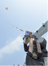 山崎先生-写真2 公開日時:2016年4月7日 | 156 × 217 (遠隔操縦や自律移動できるロボットの開発(機械工学系 山崎芳明)) 写真2: 宇宙エレベーター用クライマー(MSE-Ⅱ)とSPEC2013競技風景